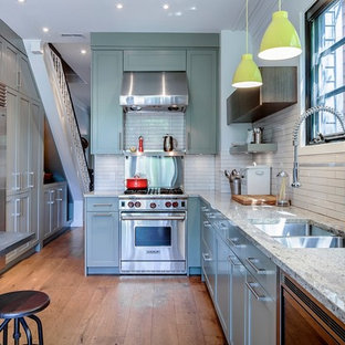 White cabinets, subway tile, beige granite countertops | Trendy kitchen backsplash, Kitchen ...