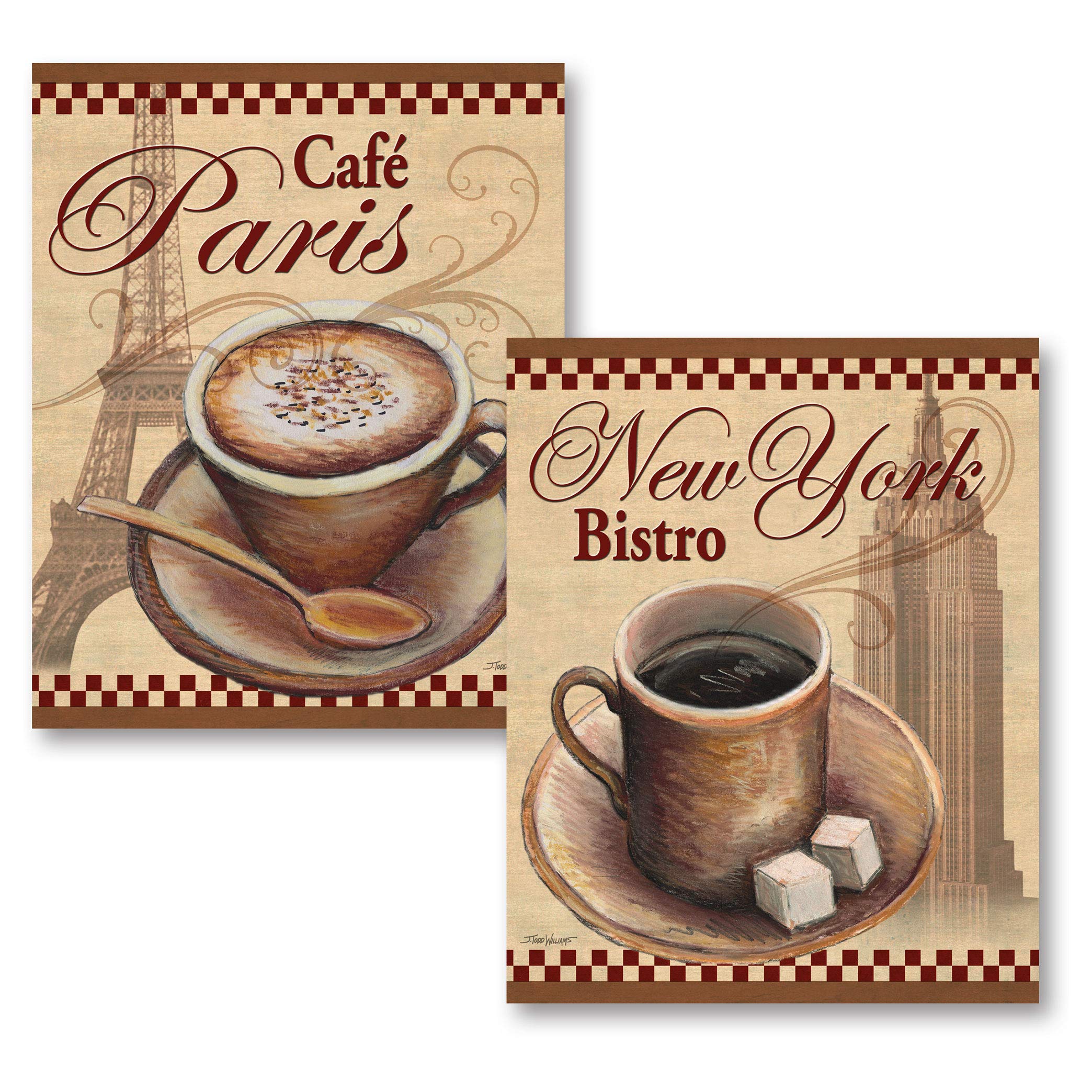 Lovely Cafe Paris and Cafe Roma Coffee Set by Daphne Brissonnet; Kitchen Decor; Two 18x8in Poster Prints