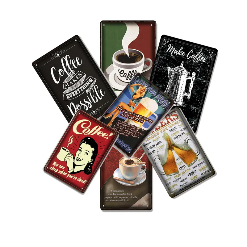 Vintage Paris Cafe Signs; Cappucino, Espresso, Caffe Latte, Caffee Mocha; Kitchen Decor; Four 20x8in Hand-Stretched Canvas