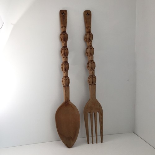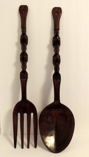 Fred Meyer - 16 Inch Carved Tiki Spoon & Fork Wooden Wall Decor Art Utensil Decoration Set - 16 Inch, 16 Inch