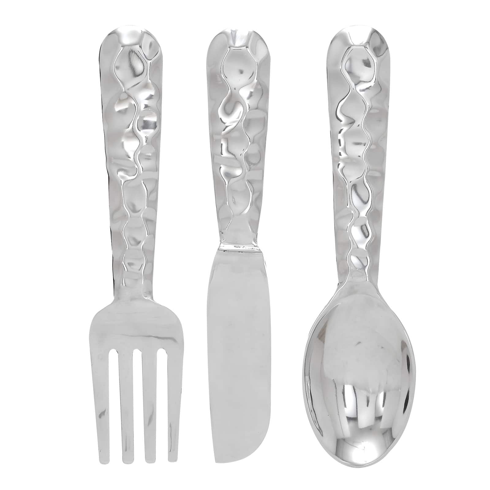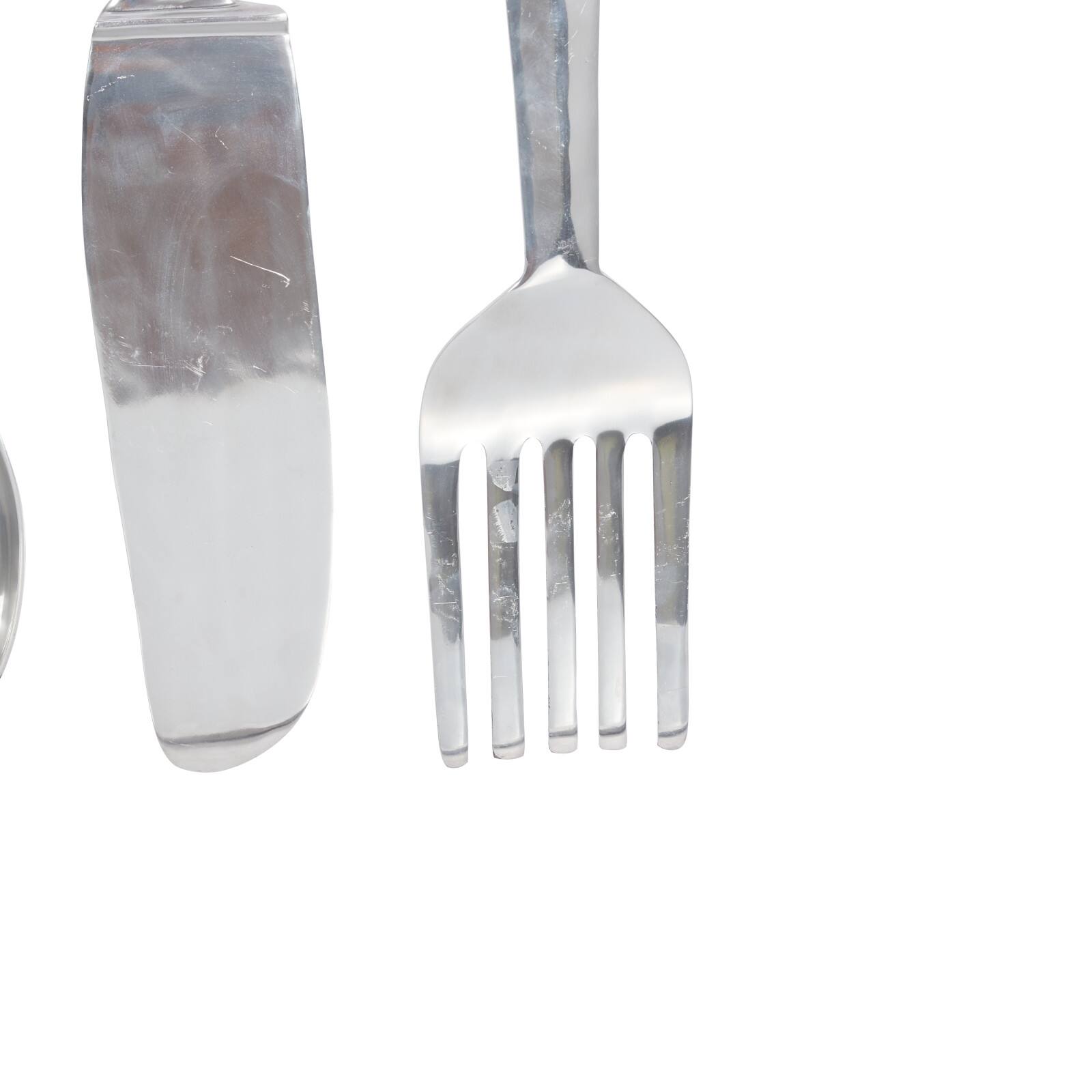 Deco 79 Set of 3 Utensil Wall Décor - amazon.com Set of three 35 inch updated traditional polished aluminum fork, knife and spoon wall sculptures, floral garlands on handles Suitable to use as a decorative item + $103.65 This item: Deco 79 Set of 3 Utensil Wall Décor $90.66