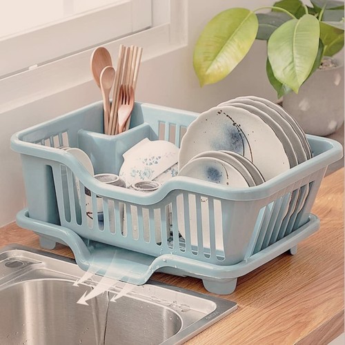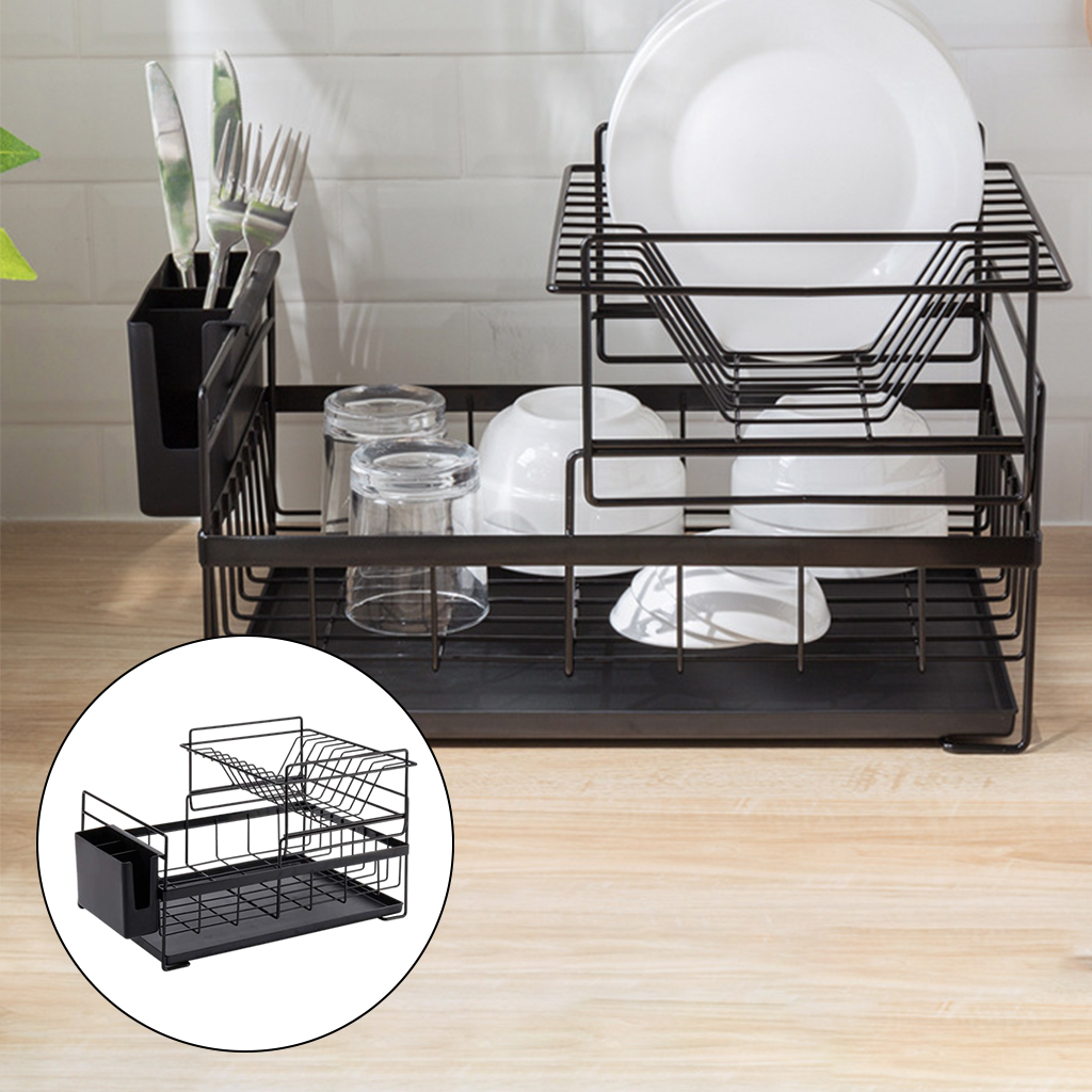 Dish Drying Rack with Drain Tray, Detachable Kitchen Drying Dish Rack Dual Layers Drip Tray Utensil Holder Towel Rack Holder
