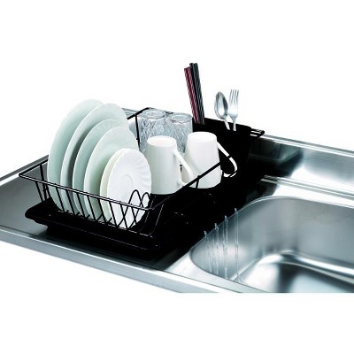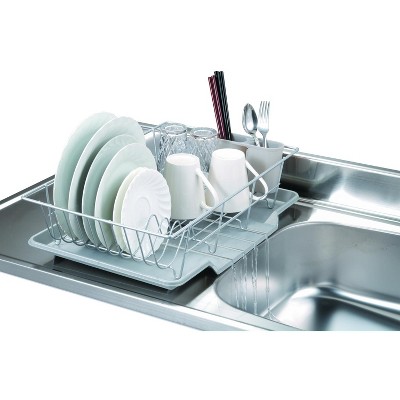 Shanik Rust Proof Expandable Draining Rack, Adjustable Dish Drainer Arms from 12 to 19 Inch, with Small Dish Drainer, Silverware and Utensil Storage ...