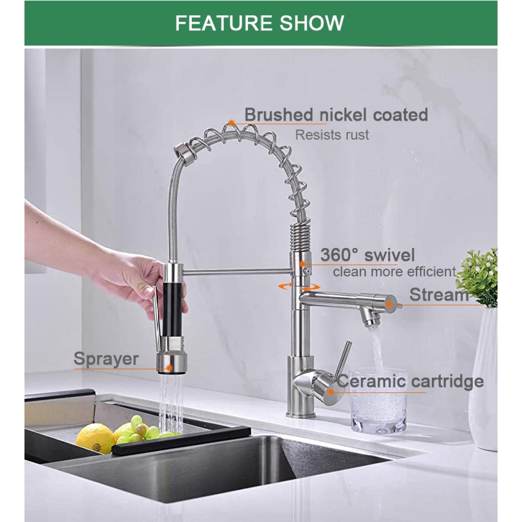 Kitchen Sink Faucet, Kitchen Faucet Stainless Steel with Pull ... Oct 19, 2020 · Durable kitchen sink faucet: Your high-quality kitchen faucet stainless steel, which is treated with 7-layer finish processing, is sturdy and free from rust. The sus304 stainless steel kitchen faucet coming with high quality sprayer head, is heavy duty and durable. The high quality ensures its longevity for more than 10 years. AIMADI Modern Kitchen Faucet Pull Down Sprayer,Stainless ... Apr 22, 2019 · This item AIMADI Modern Kitchen Faucet Pull Down Sprayer,Stainless Steel Single Handle Kitchen Sink Faucet with LED Light,Brushed Nickel GELE Kitchen Faucet with Pull Down Sprayer and 4 Spraying Modes Single Handle Commercial Spring Kitchen Sink Faucet Brushed Nickel 1 or 3 Hole Kitchen Faucets 1017-4NP