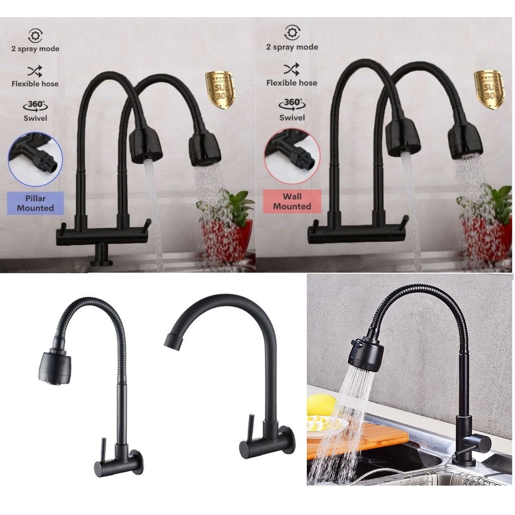 MCPRO PLUS SUS304 Black Oxide Coated On Stainless Steel Kitchen Faucet Twin Wall Sink Water Tap SSB357/SSB1220/SSB357A