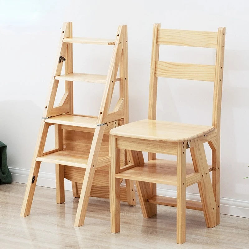 Multifunctional Kitchen Stool Solid Wood Material Ladder Chair Flip Design Step Stool Stable Load-bearing Portable Ladder