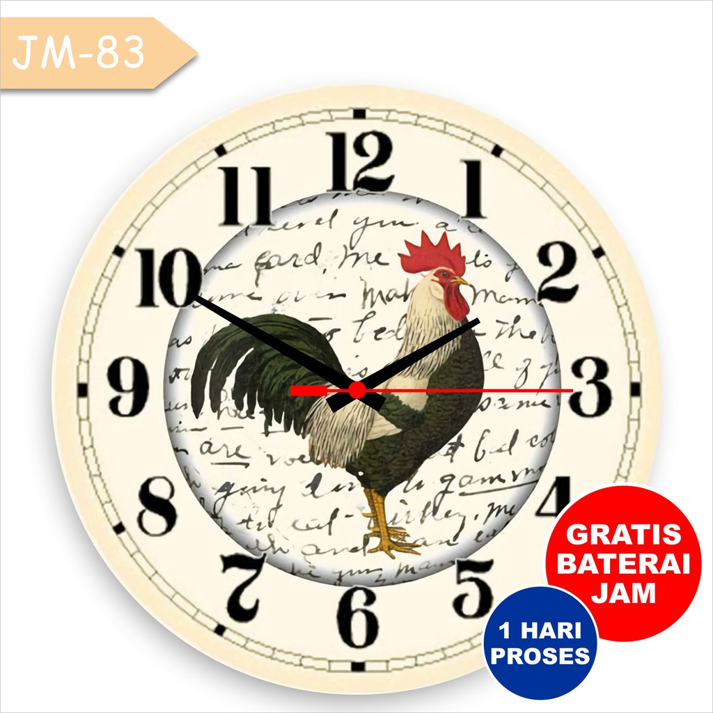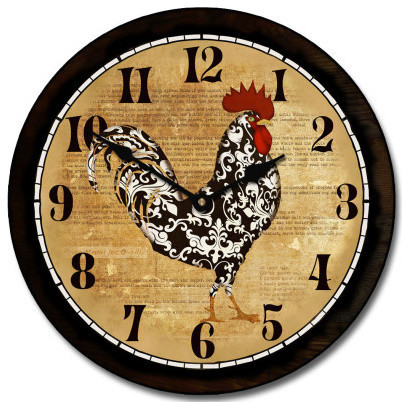 Rooster Kitchen Clock | Large Black Wall Clocks I love it! This rooster kitchen clock looks as it if it is printed on boards. It has a black background. • Our clocks usually take 2-6 business days to make. The largest ones take a few days longer. ... Open-faced wall clocks(no frame) 12 inch = 3 lbs, 18 inch =6 lbs., 24 inch = 10 lbs., 30 inch =15, 36 inch = 21 lbs., 48″ inch = 35 lbs ...
