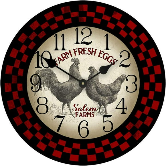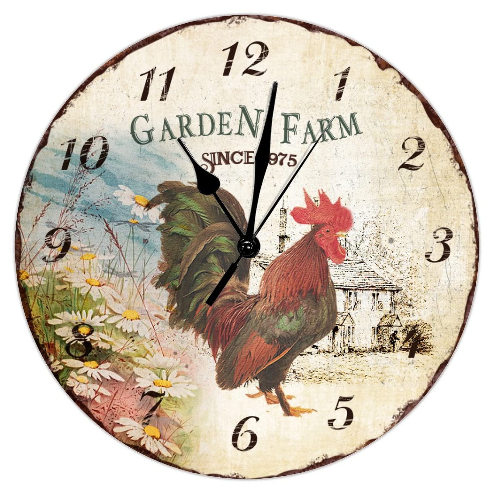 Farm Rustic Rooster Wall Clock Kitchen Wall Clock Farm Custom Wall Clocks Battery Operated 10 Inch Silent Romantic Home Office Living Room Wall Decor ...